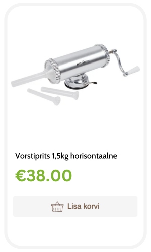 Vorstipritsi – kui teed vorste harva, sobib hästi väiksem variant 1,5 kg vorstisegu jaoks, mida tuleb küll sagedamini täita, aga iseenesest on väga tõhus abiline.