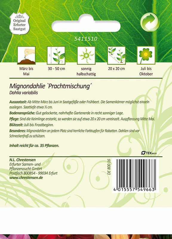 Dahlia variabilis Üheaastane. Lihtõieliste daaliate segu, sobib kasvatamiseks peenardel ja pottides. Segus on punase, kollase, oranži ja lilla värvilisi õisi. Kasvukõrgus 40 -50 cm . Taimed on soovitav ette kasvatada. Väga soojalembeline, kasvukohale istuda öökülmade möödumisel. Kasvatatakse lillepeenardel ja aiavaasides, sobib lõikelilleks. Õitseb pikalt juulist -septembrini, äraõitsenud õite eemaldamine tagab pideva õitsemise. Pakis 35 seemet.