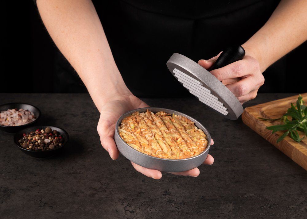 Selle pressiga saate vaevata ja kvaliteetselt vormida nii tavalisi, väiksemaid kui ka täidetud burgerikotlette, kana- või kalakotlette, krabikooke või köögiviljakotlette nii grillil kui ka pannil ja ahjus küpsetamiseks.