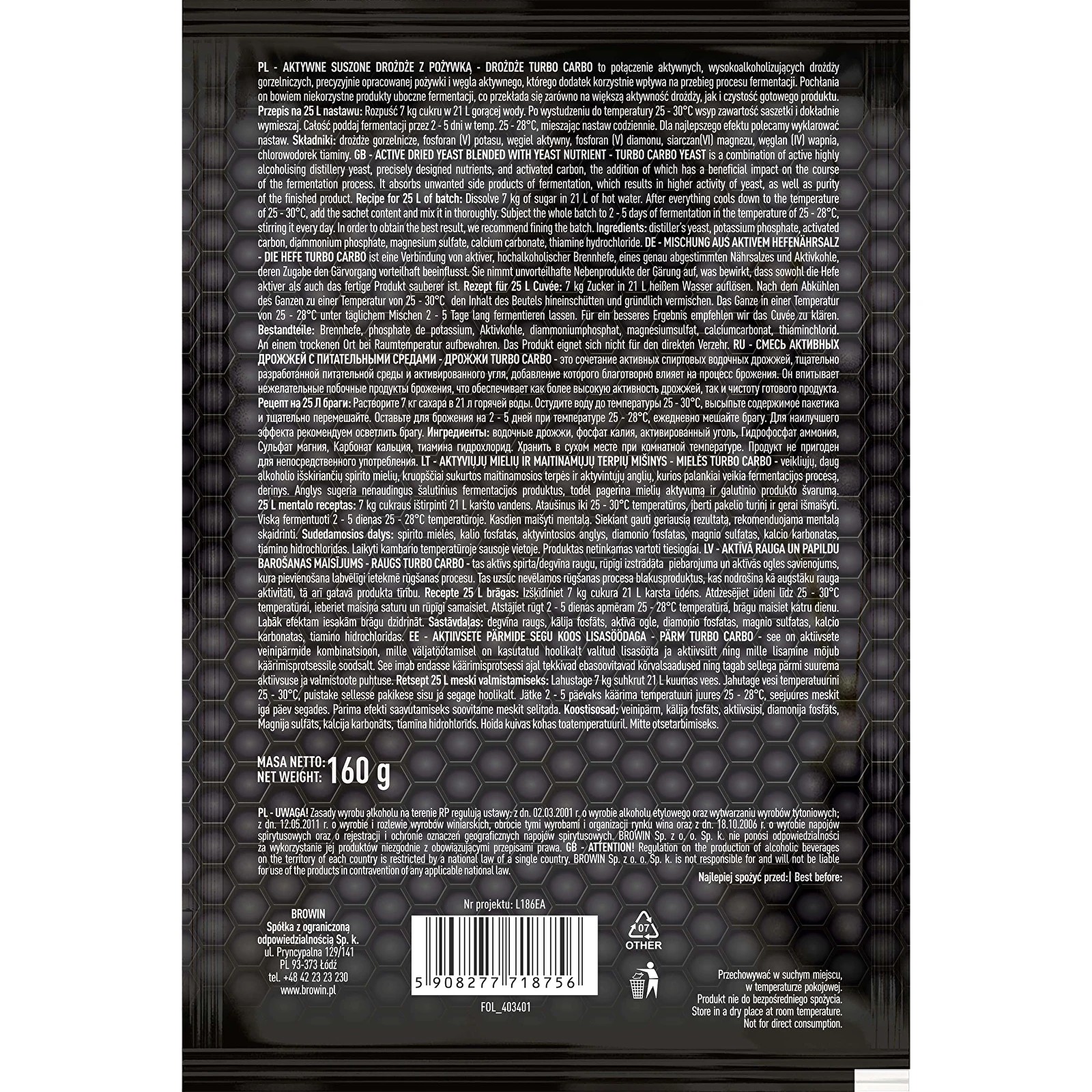 Kääritusnõus lahustage 7kg suhkrut 21 liitris kuumas vees. Pärast lahuse jahutamist temperatuurini 25–30°C lisage kogu kotikese sisu ja segage hoolikalt.