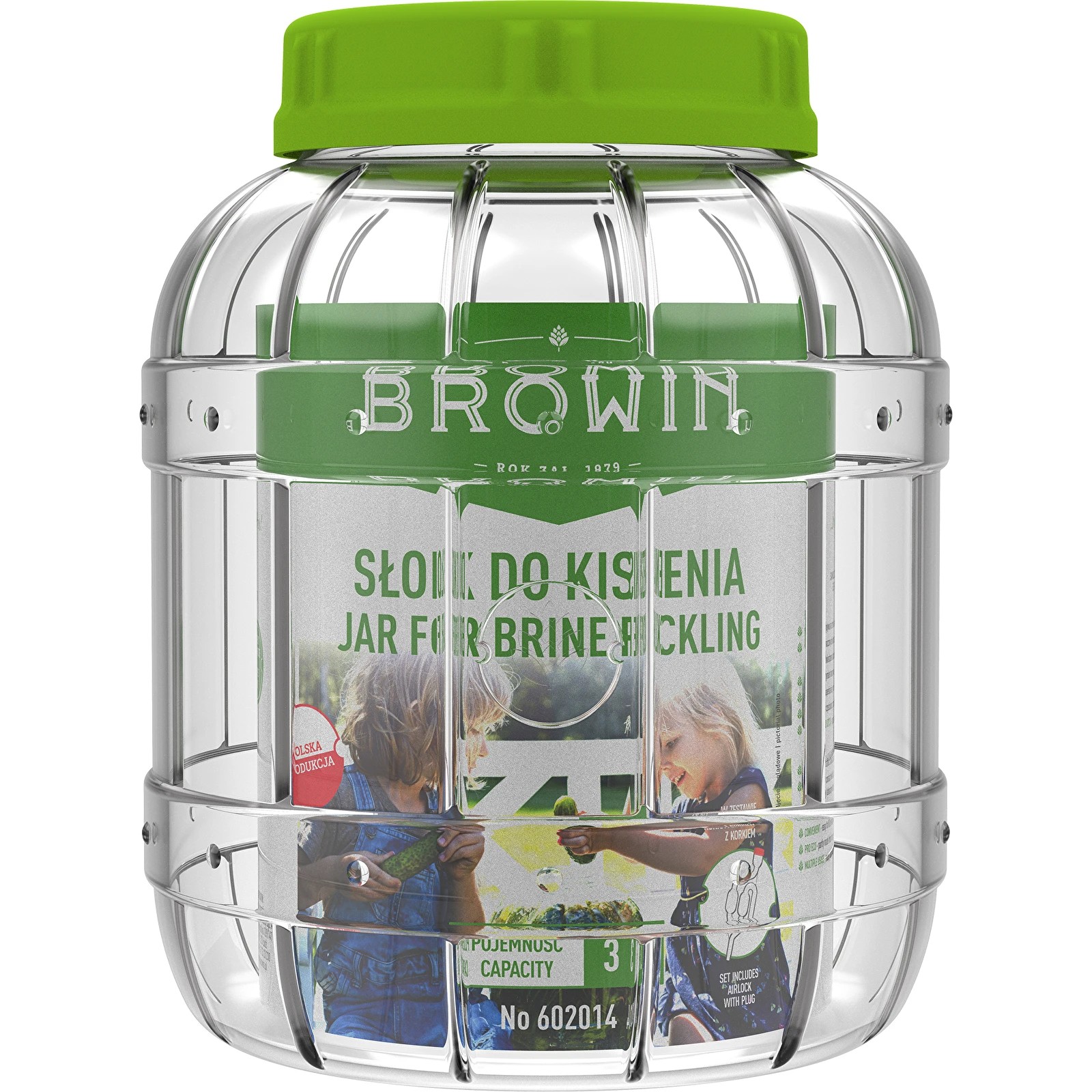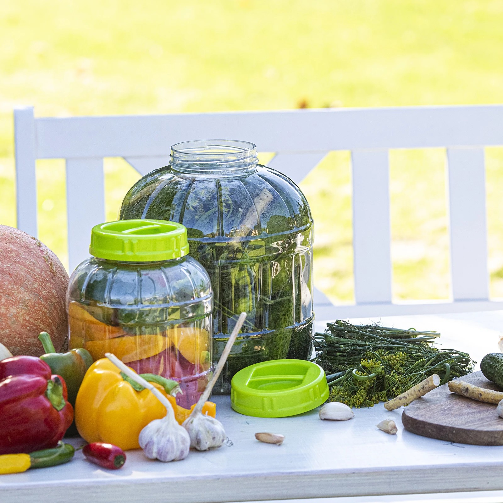 Laia suu ja tugevast plastikust purk, keeratava kaanega.