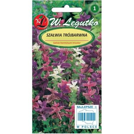 Salvia horminum tricolor Üheaastane taim, mille kõrgus on 40–60 cm. Õitsemis aeg suve keskel ja õitseb meie tingimustes külmadeni. Pastelsetes toonides õisikud on võrsetipus pikkade õisikutena. Kasutatakse nii grupiistutusteks ja soolotaimena. Pakis ca 0,5 g.