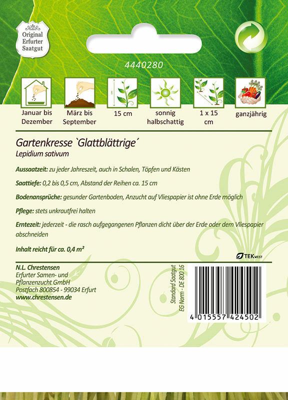 Lepidium sativum Maitsetaim, tugev, vürtsika maitsega. Võimalik toas kasvatada aastaringselt, külvata 2-3 nädala vahelise intervalliga. Külvist saagini 14 päeva. Kiiresti kasvav ja aromaatne, rohke vitamiinisisaldusega. Kasutatakse värskelt salatites ja toidu garneeringul. Pakis on seemneid 0,4 m².