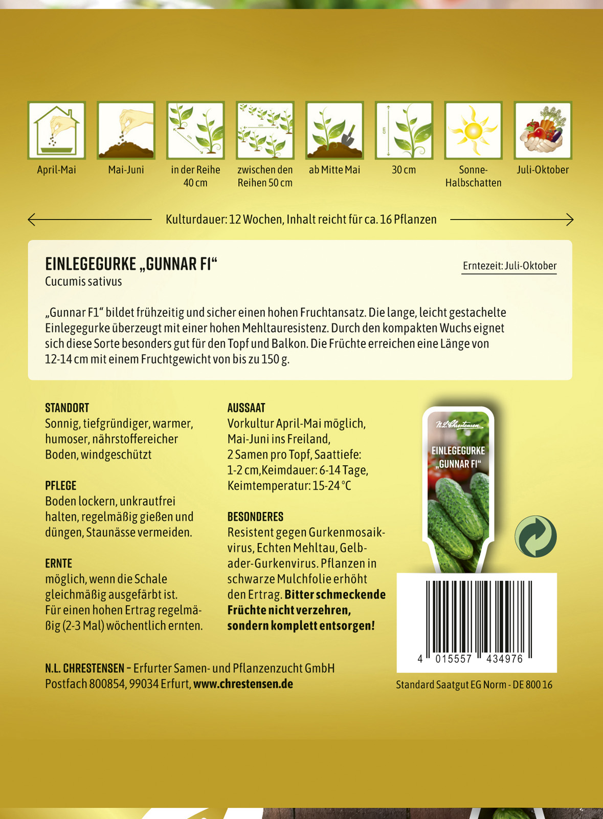 Varajane kurgisort “Gunnar F1” on kõrge saagikusega, partenokarpne, viljad asetsevad kobaras. Vili on pikk, kergelt näsalise koorega, sobib marineerimiseks ja hapendamiseks. Hea vastupidavus kurgi hahkhallitusele. Kompaktse kasvu tõttu sobib see sort eriti hästi väikestesse kasvuhoonetesse , rõdudele jt. Viljade pikkus on 12–14 cm, viljade kaal on kuni 150 g.