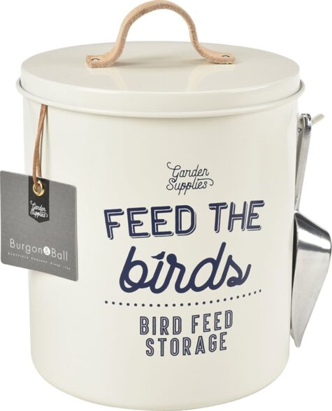 Stiilne kreemvalgest metallist nõu sobib linnutoidu hoidmiseks ja kaitseb seda kahjurite eest. Tänu oma kompaktsele suurusele on seda hea toidumaja juurde minnes kaasa võtta. Kaunis disain, ilus kiri ja peened nahkdetailid muudavad selle nõu tõeliseks pilgupüüdjaks. Käepärase väikse kühvliga on mugav toitu nõust võtta.