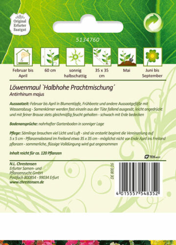 Antirrhinum majus Levinud suvelill. Segu on kõrgekasvulistest (40-60) lõvilõugadest . Pika õitsemisajaga ja sobib lõikeõieks. Tagasilõigata peale õitsemist, see soodustab teist õitsemist. Külv veebruar-märts, õitseb juuli-oktoober. Valgusidanev, seemneid ei kaeta mullaga. Välja istutada juunis. Pakis on 120 seemet.