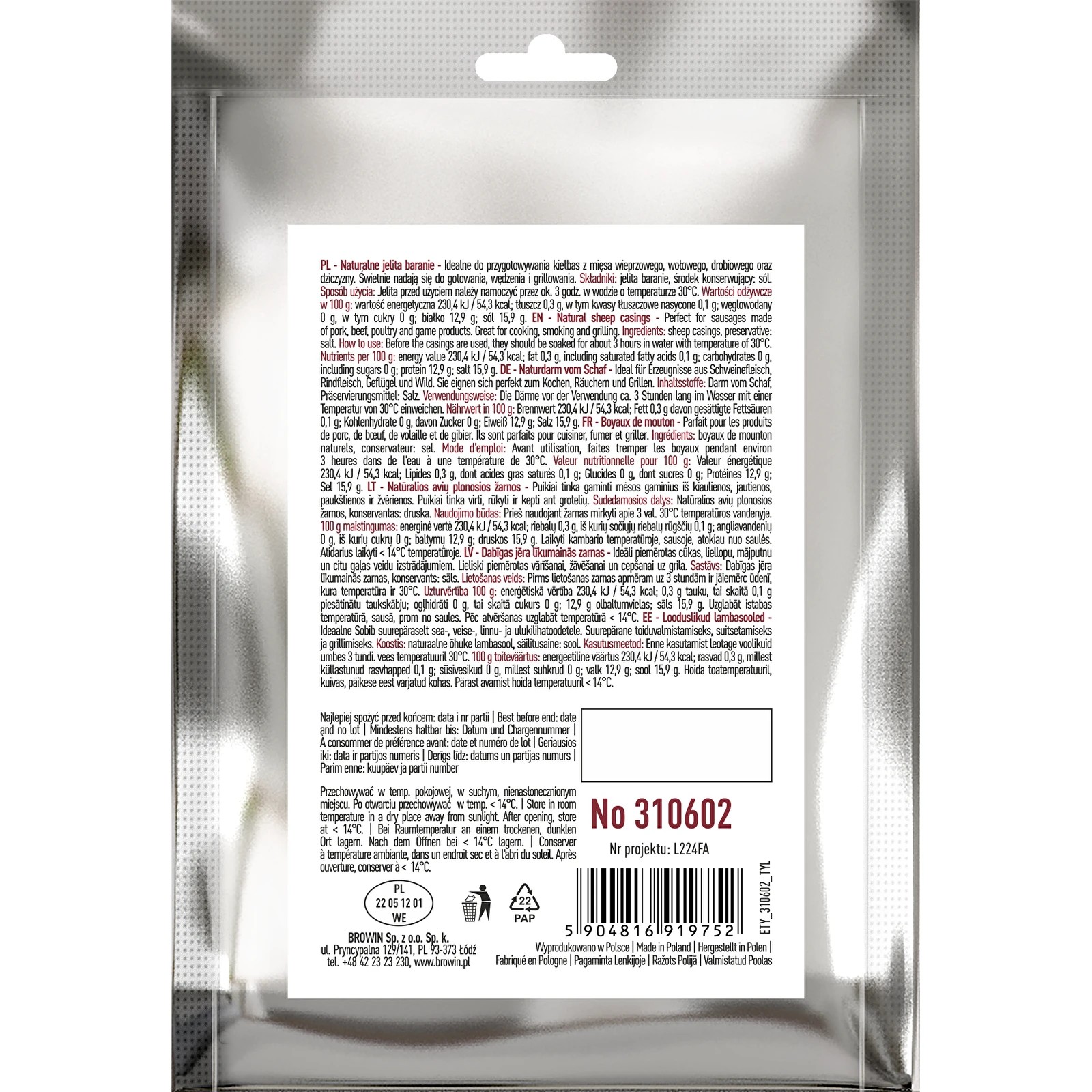 Soolte läbimõõt 18mm, pikkus 15m. Ideaalne kabanosside, frankfurterite ja grillvorstide tegemiseks.