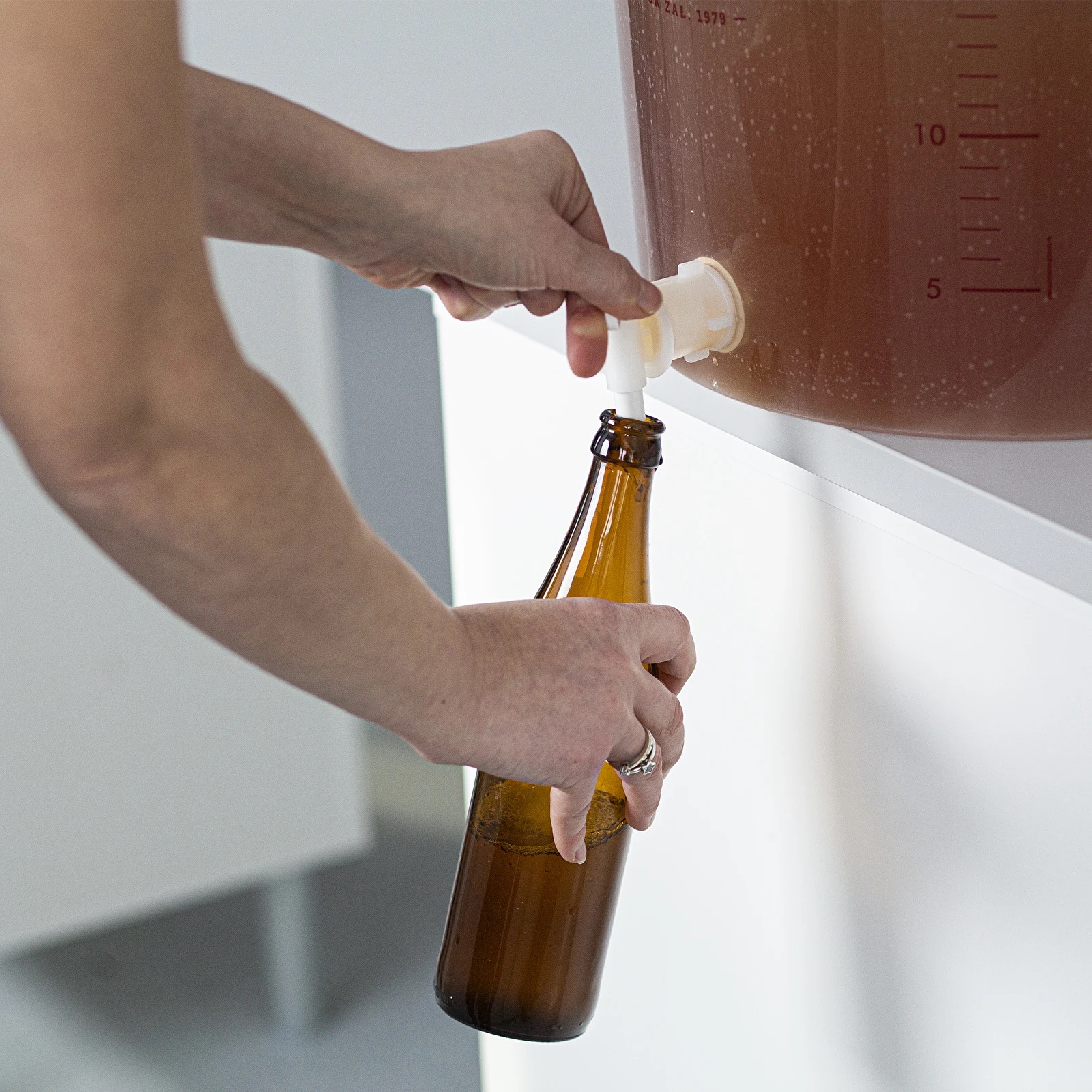 Kui kraan on paigaldatud, lisage pruulimisanumasse pesuainet ja asetage sinna ka kõik pruulimistarvikud. Täitke anum külma veega ja laske tarvikutel leotada vähemalt 30 minutit. Loputage kõik kuuma veega, et eemaldada võimaikud pesuainelõhna jäljed.