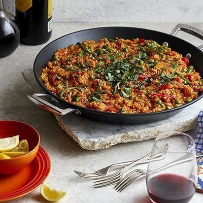 Valmistage klassikaline kana- või mereannipaella ning serveerige see lauale otse pannilt.