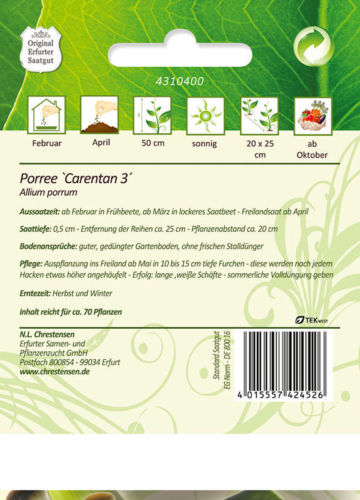 Kasvatamine: Pika kasvuaja tõttu tuleb taimed ette kasvatada. Seemned tuleks külvikasti külvata märtsi lõpus. Tõusmed ilmuvad 10-15 päevaga. Avamaale tuleks taimed istutada mai lõpus ja vahekauguseks jätta ca 15-20cm. Kasvunõuete poolest sarnaneb porrulauk hariliku sibulaga. Paremini sobivad talle nõrgalt happelise kuni neutraalse reaktsiooniga keskmiselt rasked liivsavimullad.