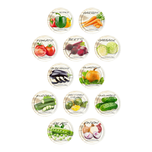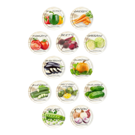 Värviline , keermega purgikaas. Läbimõõt 82 mm. Komplektis erinevad mustrid.