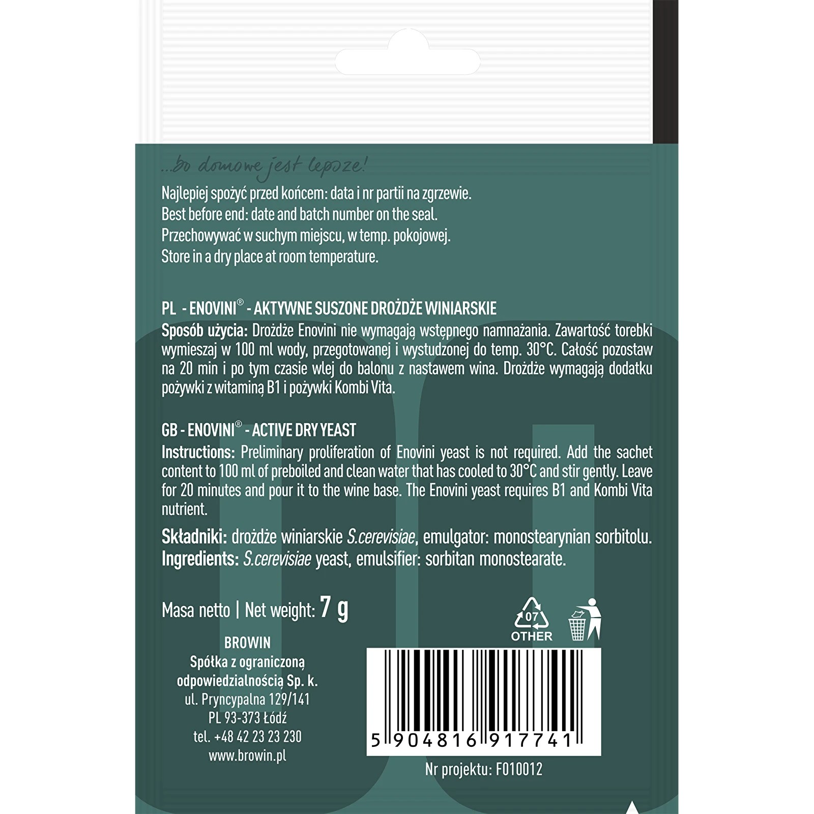 Kvaliteetne veinikuivpärm Enovini® on segu kahest veinipärmi tüvest, mis tagab laia temperatuuri tolerantsi, käärimistemperatuur on 15–35 ° C . Sobib ka suurema parkaine sisaldusega marja ja puuvilja veini kääritamiseks. Võimalik saavutada kuni 18 % alkoholisisaldus veinis . Hea kasutada veini taaskäivitamiseks. Soovitav kasutada koos veinipärmi toiteainetega .