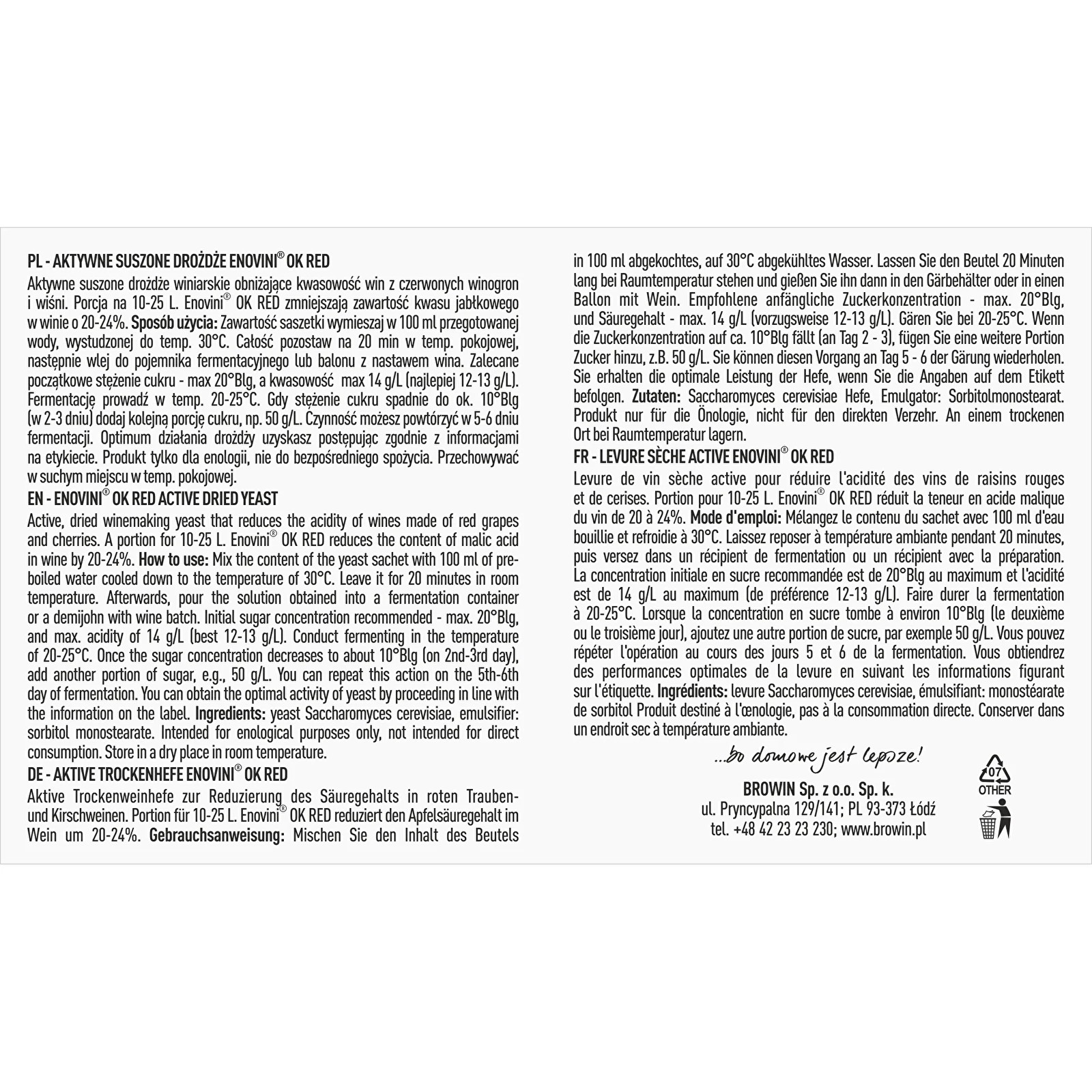 Enovini® OK RED pärm vähendab veini õunhappe sisaldust 20–24%. Tänu sellele on vein mahedam ja vähem happeline, pakkudes meeldivamat maitseelamust.