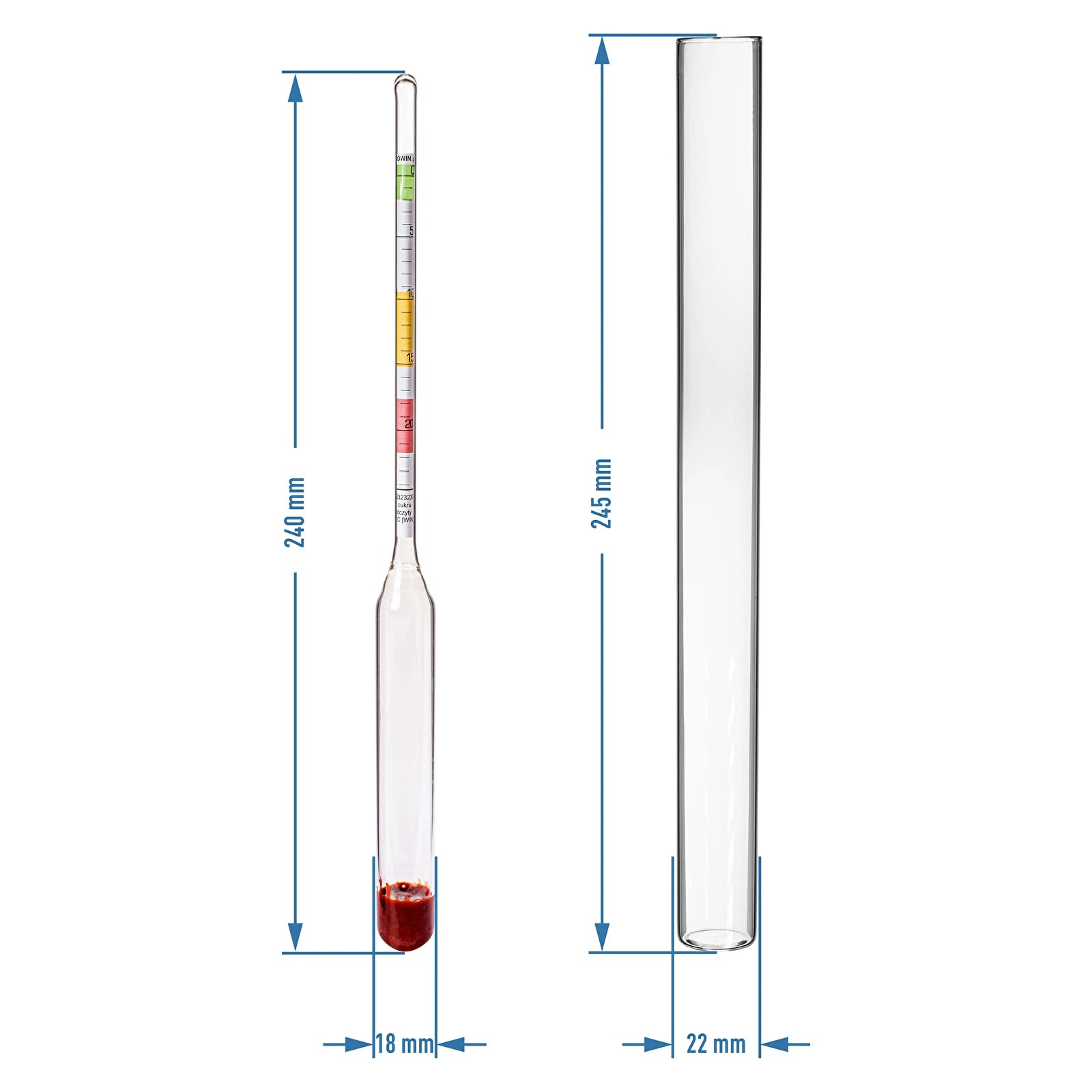 See hüdromeeter võimaldab ka veinis alkoholi kontsentratsiooni kaudselt määrata lihtsate arvutuste abil.