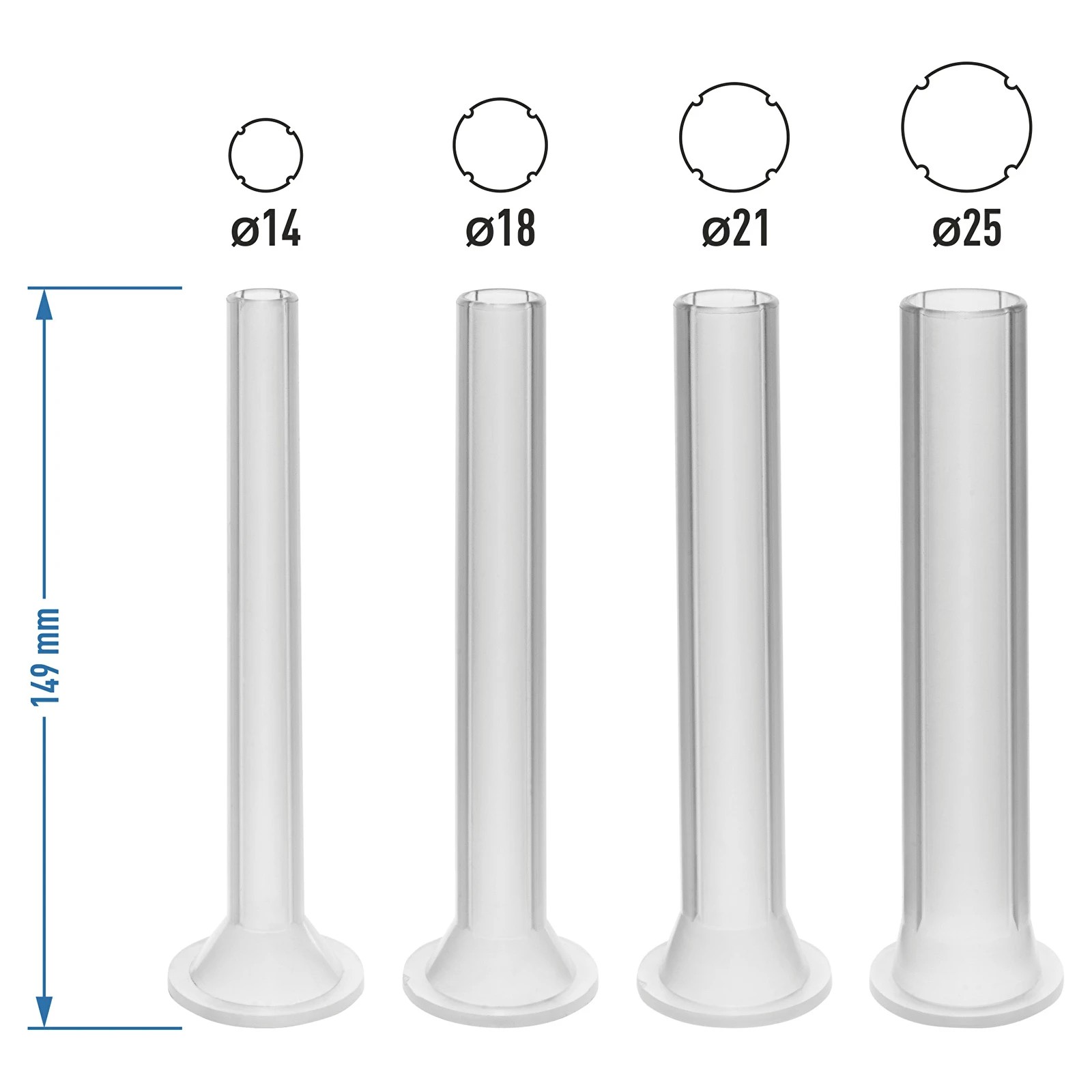 läbimõõduga: 14, 18, 21, 25, 29 ja 35mm. k.a. 14mm otsik kabanossivorstide valmistamiseks